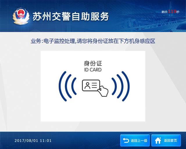 该交通违法处理自助设备仅限于苏州大市范围内的驾驶证、行驶证业务,请带好本人身份证原件(临时身份证不可用)、驾驶证原件,关联本人驾驶证信息的手机(以便接收验证信息)。